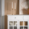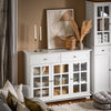 Ši daugiafunkcinė spintelė su dviem skaidriomis stiklinėmis durimis ir dvi uždaros medinės durys iš tikrųjų apsaugo nuo dulkių ir apsaugo jūsų privatumą.