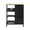 Mikrobangų spintelė su atvirais skyriais, puikiai tinkančiais mikrobangų krosnelei, skrudintuvui ar orkaičiui; Viršutinė erdvė kavos gamintojams ar sulčių presai.
