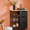 Stalviršyje yra vietos jūsų mikrobangų krosnelei, espreso mašinai ir kt., O atvira lentyna leidžia lengvai pasiekti jūsų virtuvės indus. Be to, saugojimo dėžutė ir spintelė laiko jūsų objektus organizuoti ir švarūs.