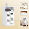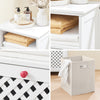 - [Praktinė saugojimo vieta su integruotu skalbinių krepšeliu]: Ši vonios kabinetas (45 x 41,5 x 87 cm) sujungia neausto audinio skalbimo skyrių su atvira lentyna, todėl siūlo puikų sprendimą rankšluosčiams, priežiūros priemonėms ar nešvarumų plovimui, tobulam šeimos vonios kambariui