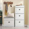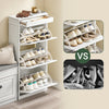- [Slide Box ir stabili su apsauga] Integruota batų kremo dėžutė, raktas. Lydimo antgalio dangtelio dėka salės spintelę galima saugiai pritvirtinti prie sienos. Ši daugiafunkcinė batų spintelė yra siaura, tobula batų baldai, kad jūsų salė būtų švari ir stilinga